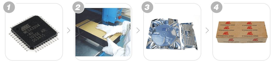 يتم استخدام عبوات التدريع الثابتة المتوافقة مع معايير الصناعة للمكونات الإلكترونية. تسمح المواد المقاومة للكهرباء الساكنة والشفافة بالتعرف بسهولة على مجموعات الدوائر المتكاملة وثنائي الفينيل متعدد الكلور.